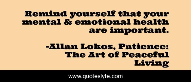 "Allan Lokos, Patience: The Art of Peaceful Living Quotes." Quoteslyfe.com, 2025. Sat. 06 Dec. 2025. <https://www.quoteslyfe.com/quote/Remind-yourself-that-your-mental-emotional-health-103276>.