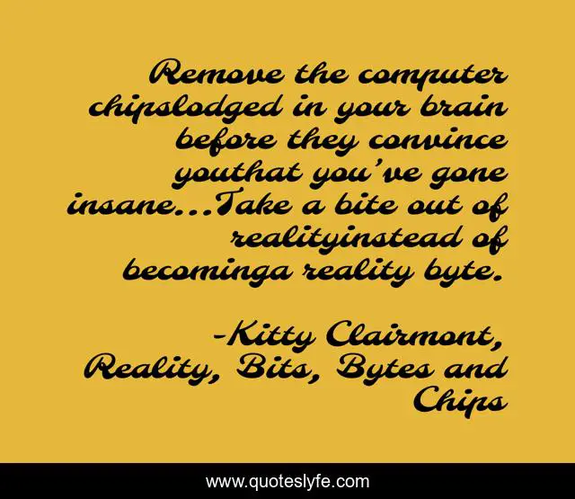 "Kitty Clairmont, Reality, Bits, Bytes and Chips Quotes." Quoteslyfe.com, 2025. Fri. 05 Dec. 2025. <https://www.quoteslyfe.com/quote/Remove-the-computer-chipslodged-in-your-brain-204586>.