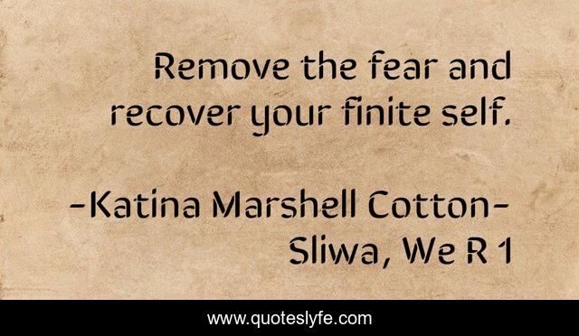 This page presents the quote "Remove the fear and recover your finite self.". Author of this quote is Katina Marshell Cotton-Sliwa, We R 1. .
