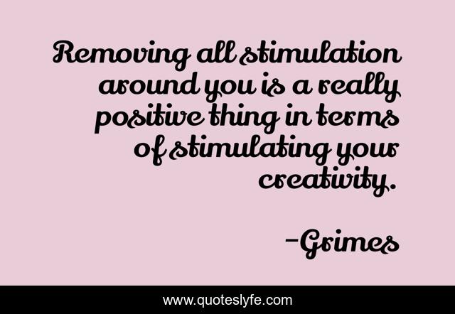 This page presents the quote "Removing all stimulation around you is a really positive thing in terms of stimulating your creativity.". Author of this quote is Grimes. This quote is about creativity, stimulating,.