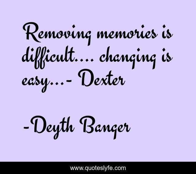 This page presents the quote "Removing memories is difficult.... changing is easy...- Dexter". Author of this quote is Deyth Banger. This quote is about memories, dexter, difficult,.