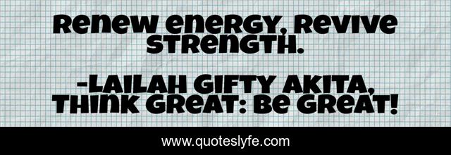 "Lailah Gifty Akita, Think Great: Be Great! Quotes." Quoteslyfe.com, 2025. Mon. 08 Dec. 2025. <https://www.quoteslyfe.com/quote/Renew-energy-revive-strength-98774>.