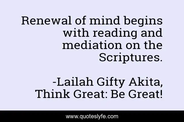 "Lailah Gifty Akita, Think Great: Be Great! Quotes." Quoteslyfe.com, 2025. Sun. 07 Dec. 2025. <https://www.quoteslyfe.com/quote/Renewal-of-mind-begins-with-reading-and-94843>.