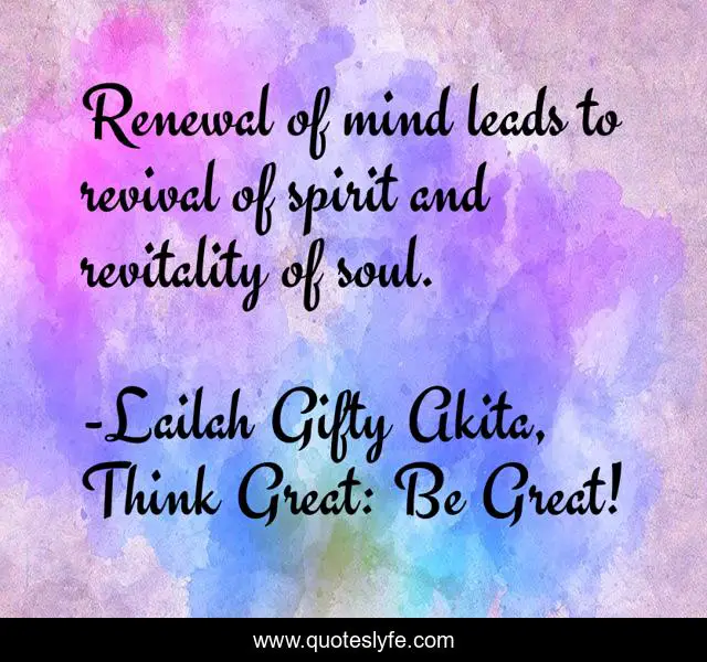 "Lailah Gifty Akita, Think Great: Be Great! Quotes." Quoteslyfe.com, 2025. Tue. 09 Dec. 2025. <https://www.quoteslyfe.com/quote/Renewal-of-mind-leads-to-revival-of-87230>.