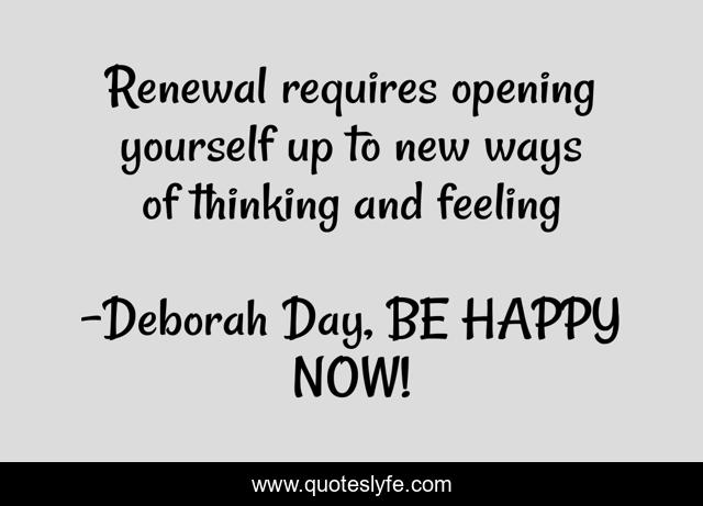 "Deborah Day, BE HAPPY NOW! Quotes." Quoteslyfe.com, 2025. Sat. 06 Dec. 2025. <https://www.quoteslyfe.com/quote/Renewal-requires-opening-yourself-up-to-new-185571>.