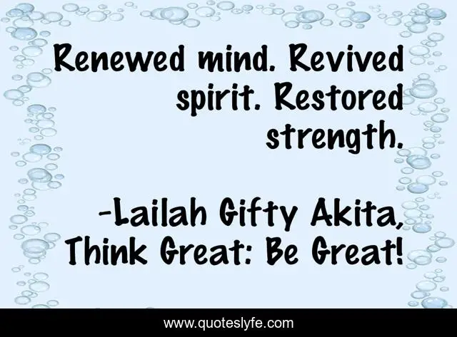 "Lailah Gifty Akita, Think Great: Be Great! Quotes." Quoteslyfe.com, 2025. Sat. 06 Dec. 2025. <https://www.quoteslyfe.com/quote/Renewed-mind-Revived-spirit-Restored-strength-78235>.