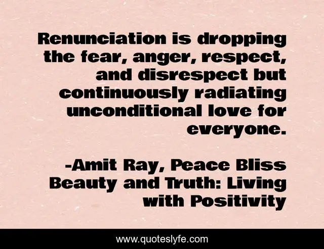"Amit Ray, Peace Bliss Beauty and Truth: Living with Positivity Quotes." Quoteslyfe.com, 2025. Sun. 07 Dec. 2025. <https://www.quoteslyfe.com/quote/Renunciation-is-dropping-the-fear-anger-respect-45433>.