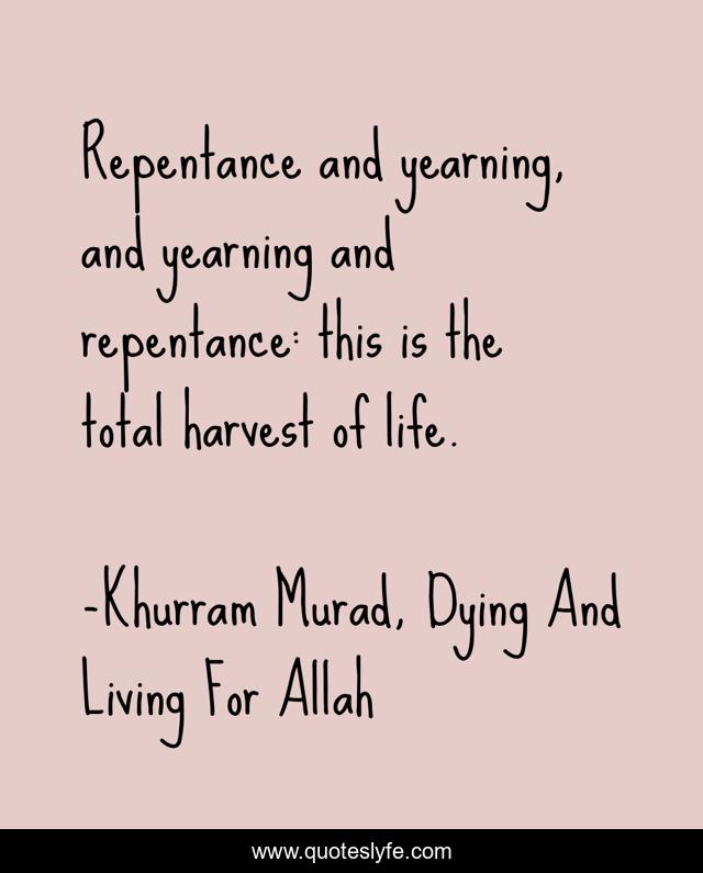 This page presents the quote "Repentance and yearning, and yearning and repentance: this is the total harvest of life.". Author of this quote is Khurram Murad, Dying And Living For Allah. This quote is about islam, life, muslim, murad, khurram,.