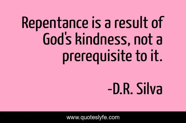 This page presents the quote "Repentance is a result of God's kindness, not a prerequisite to it.". Author of this quote is D.R. Silva. This quote is about repentance, christianity, religion, questions, church, sin, think,.