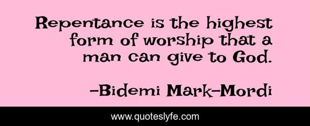 This page presents the quote "Repentance is the highest form of worship that a man can give to God.". Author of this quote is Bidemi Mark-Mordi. This quote is about faith, repentance, worship, god,.