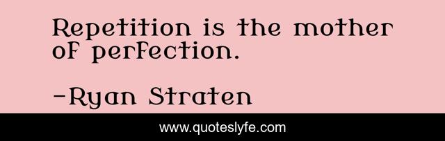 This page presents the quote "Repetition is the mother of perfection.". Author of this quote is Ryan Straten. This quote is about repetition, perfection,.