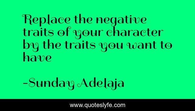 "Sunday Adelaja Quotes." Quoteslyfe.com, 2025. Sat. 06 Dec. 2025. <https://www.quoteslyfe.com/quote/Replace-the-negative-traits-of-your-character-46980>.