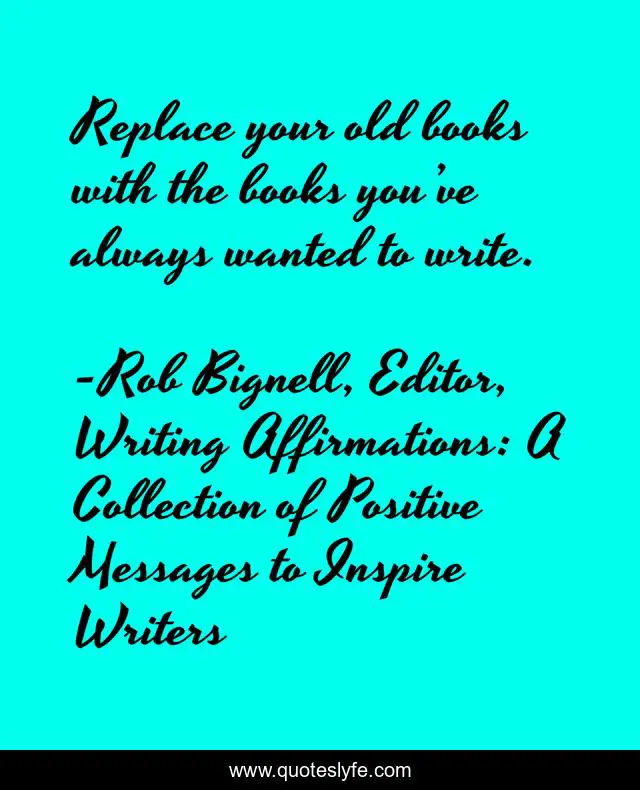 "Rob Bignell, Editor, Writing Affirmations: A Collection of Positive Messages to Inspire Writers Quotes." Quoteslyfe.com, 2025. Fri. 05 Dec. 2025. <https://www.quoteslyfe.com/quote/Replace-your-old-books-with-the-books-151162>.
