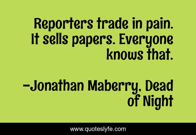 "Jonathan Maberry, Dead of Night Quotes." Quoteslyfe.com, 2025. Mon. 08 Dec. 2025. <https://www.quoteslyfe.com/quote/Reporters-trade-in-pain-It-sells-papers-256630>.