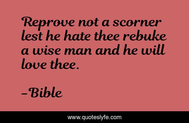 This page presents the quote "Reprove not a scorner lest he hate thee rebuke a wise man and he will love thee.". Author of this quote is Bible. This quote is about critics, criticism,.