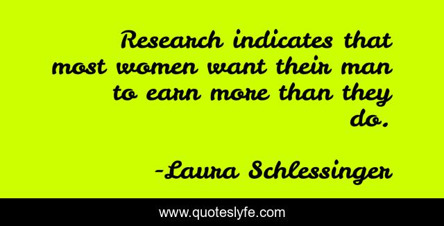 This page presents the quote "Research indicates that most women want their man to earn more than they do.". Author of this quote is Laura Schlessinger. This quote is about women, research, man,.