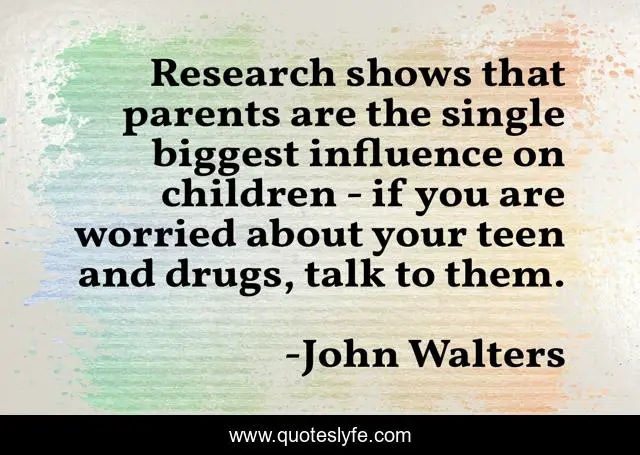 This page presents the quote "Research shows that parents are the single biggest influence on children - if you are worried about your teen and drugs, talk to them.". Author of this quote is John Walters. This quote is about parents, children, research,.