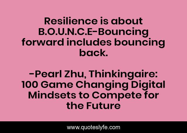 This page presents the quote "Resilience is about B.O.U.N.C.E-Bouncing forward includes bouncing back.". Author of this quote is Pearl Zhu, Thinkingaire: 100 Game Changing Digital Mindsets to Compete for the Future. This quote is about thinking, resilience,.