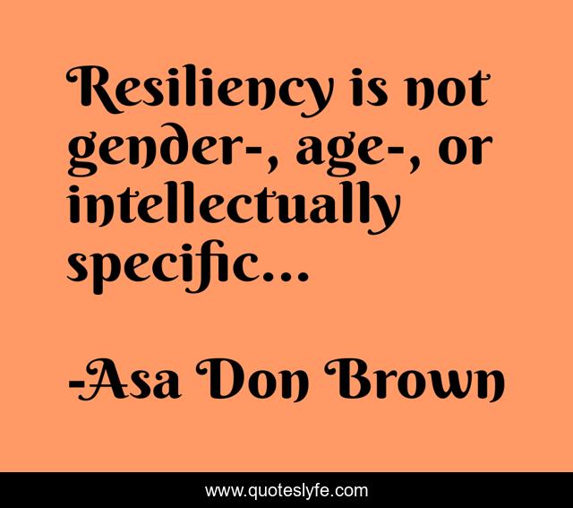 "Asa Don Brown Quotes." Quoteslyfe.com, 2025. Fri. 05 Dec. 2025. <https://www.quoteslyfe.com/quote/Resiliency-is-not-gender-age-or-intellectually-103300>.