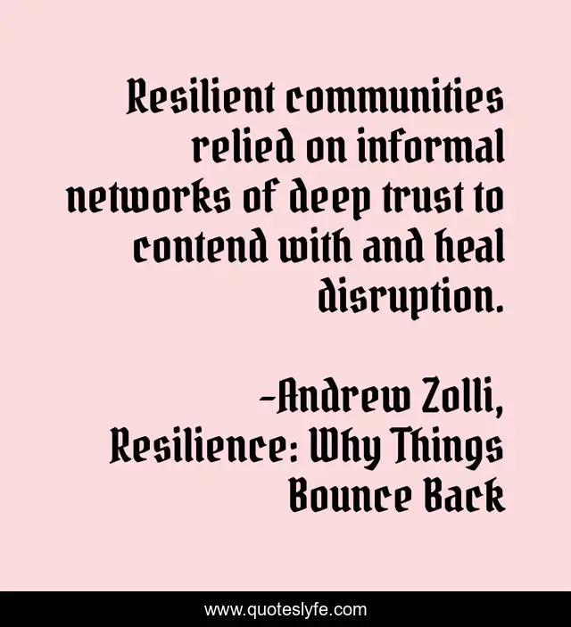 "Andrew Zolli, Resilience: Why Things Bounce Back Quotes." Quoteslyfe.com, 2025. Sat. 06 Dec. 2025. <https://www.quoteslyfe.com/quote/Resilient-communities-relied-on-informal-networks-of-64886>.