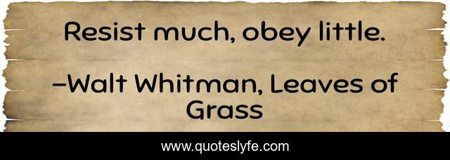 "Walt Whitman, Leaves of Grass Quotes." Quoteslyfe.com, 2025. Tue. 09 Dec. 2025. <https://www.quoteslyfe.com/quote/Resist-much-obey-little-24234>.