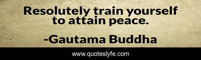 This page presents the quote "Resolutely train yourself to attain peace.". Author of this quote is Gautama Buddha. This quote is about buddhism, peace, buddha,.