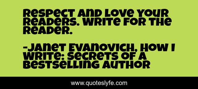 This page presents the quote "Respect and love your readers. Write for the reader.". Author of this quote is Janet Evanovich, How I Write: Secrets of a Bestselling Author. .