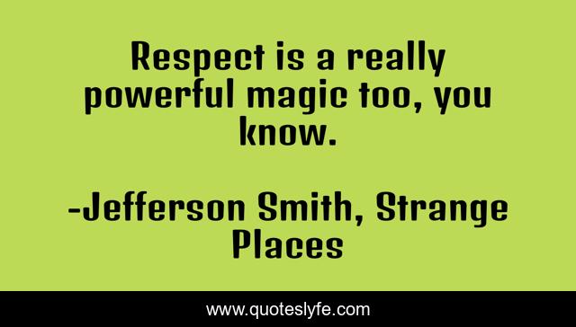 This page presents the quote "Respect is a really powerful magic too, you know.". Author of this quote is Jefferson Smith, Strange Places. This quote is about fantasy, young-adult, magic, respect, self-esteem,.