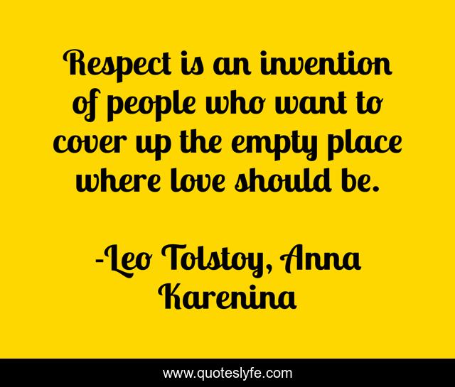 This page presents the quote "Respect is an invention of people who want to cover up the empty place where love should be.". Author of this quote is Leo Tolstoy, Anna Karenina. This quote is about respect, love, affection,.