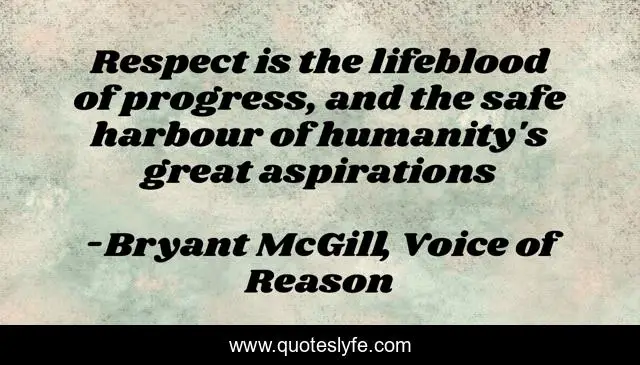 This page presents the quote "Respect is the lifeblood of progress, and the safe harbour of humanity's great aspirations". Author of this quote is Bryant McGill, Voice of Reason. This quote is about respect, aspiration, love, affection,.