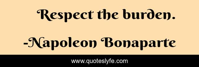 This page presents the quote "Respect the burden.". Author of this quote is Napoleon Bonaparte. .