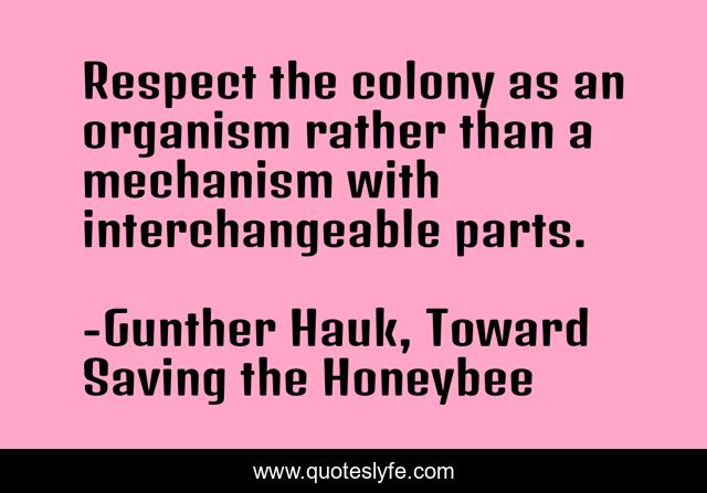 "Gunther Hauk, Toward Saving the Honeybee Quotes." Quoteslyfe.com, 2025. Fri. 05 Dec. 2025. <https://www.quoteslyfe.com/quote/Respect-the-colony-as-an-organism-rather-184976>.