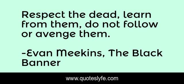 This page presents the quote "Respect the dead, learn from them, do not follow or avenge them.". Author of this quote is Evan Meekins, The Black Banner. This quote is about dead, fiction, fantasy, young-adult-fiction, fantasy-fiction, learn, respect, young-adult, young-adult-fantasy,.