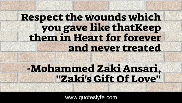 "Mohammed Zaki Ansari, "Zaki's Gift Of Love" Quotes." Quoteslyfe.com, 2025. Fri. 05 Dec. 2025. <https://www.quoteslyfe.com/quote/Respect-the-wounds-which-you-gave-like-37777>.