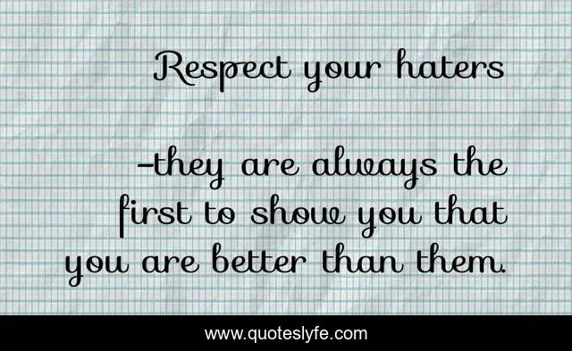 "they are always the first to show you that you are better than them. Quotes." Quoteslyfe.com, 2025. Fri. 05 Dec. 2025. <https://www.quoteslyfe.com/quote/Respect-your-haters-58243>.