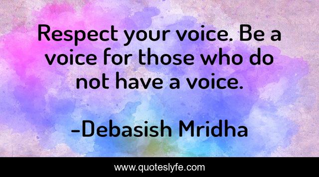 This page presents the quote "Respect your voice. Be a voice for those who do not have a voice.". Author of this quote is Debasish Mridha. This quote is about quotes, philosophy, debasish-mridha, respect-your-voice, debasish-mridha-md, inspirational, enthusiasm, be-a-voice-for-others,.