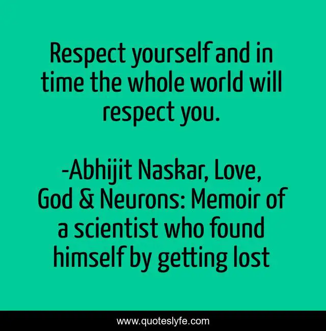 "Abhijit Naskar, Love, God & Neurons: Memoir of a scientist who found himself by getting lost Quotes." Quoteslyfe.com, 2025. Fri. 05 Dec. 2025. <https://www.quoteslyfe.com/quote/Respect-yourself-and-in-time-the-whole-33237>.