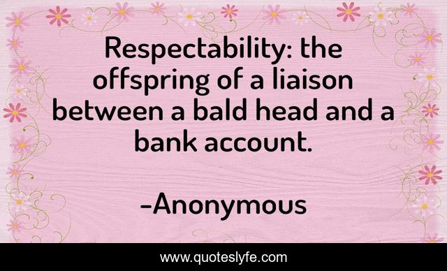 This page presents the quote "Respectability: the offspring of a liaison between a bald head and a bank account.". Author of this quote is Anonymous. This quote is about courage, bravery,.