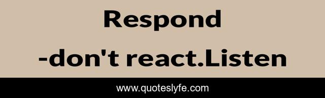 This page presents the quote "Respond". Author of this quote is don't react.Listen. .