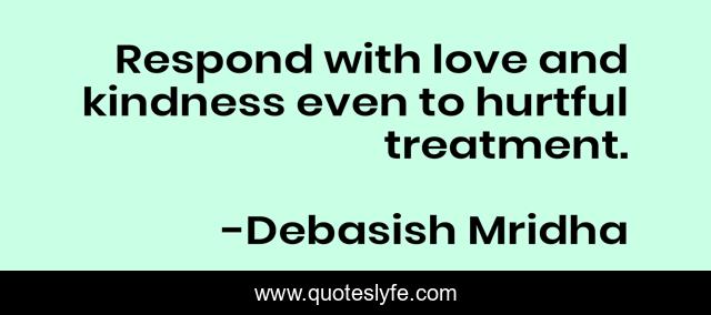 This page presents the quote "Respond with love and kindness even to hurtful treatment.". Author of this quote is Debasish Mridha. This quote is about life, philosophy, love, knowledge, inspirational, intelligence, hurtful, education, treatment,.