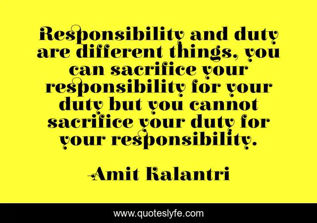 "Amit Kalantri Quotes." Quoteslyfe.com, 2025. Fri. 05 Dec. 2025. <https://www.quoteslyfe.com/quote/Responsibility-and-duty-are-different-things-you-99110>.