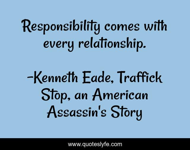 "Kenneth Eade, Traffick Stop, an American Assassin's Story Quotes." Quoteslyfe.com, 2025. Sat. 06 Dec. 2025. <https://www.quoteslyfe.com/quote/Responsibility-comes-with-every-relationship-35707>.