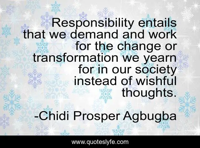 "Chidi Prosper Agbugba Quotes." Quoteslyfe.com, 2025. Fri. 05 Dec. 2025. <https://www.quoteslyfe.com/quote/Responsibility-entails-that-we-demand-and-work-83495>.