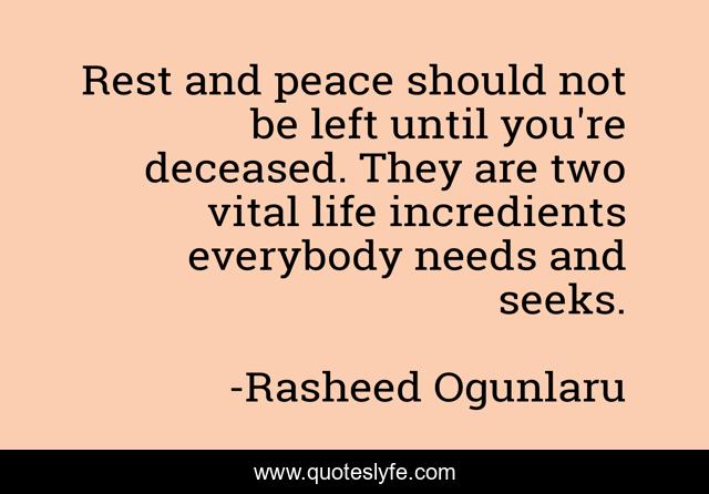 "Rasheed Ogunlaru Quotes." Quoteslyfe.com, 2025. Sun. 07 Dec. 2025. <https://www.quoteslyfe.com/quote/Rest-and-peace-should-not-be-left-105899>.