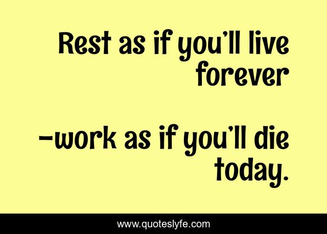 "work as if you’ll die today. Quotes." Quoteslyfe.com, 2025. Sat. 06 Dec. 2025. <https://www.quoteslyfe.com/quote/Rest-as-if-you-ll-live-forever-58014>.