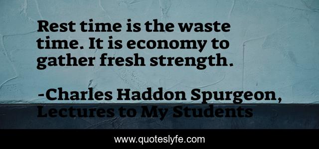 This page presents the quote "Rest time is the waste time. It is economy to gather fresh strength.". Author of this quote is Charles Haddon Spurgeon, Lectures to My Students. This quote is about sleep, leisure,.