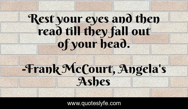 "Frank McCourt, Angela's Ashes Quotes." Quoteslyfe.com, 2025. Fri. 05 Dec. 2025. <https://www.quoteslyfe.com/quote/Rest-your-eyes-and-then-read-till-232012>.