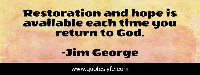 This page presents the quote "Restoration and hope is available each time you return to God.". Author of this quote is Jim George. This quote is about christian, god, forgive, repent, turn, restoration, time, return, hope,.