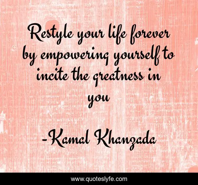 "Kamal Khanzada Quotes." Quoteslyfe.com, 2025. Sat. 06 Dec. 2025. <https://www.quoteslyfe.com/quote/Restyle-your-life-forever-by-empowering-yourself-60116>.