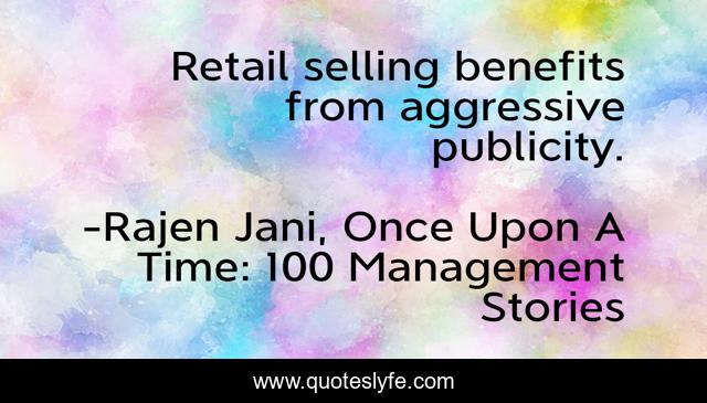 "Rajen Jani, Once Upon A Time: 100 Management Stories Quotes." Quoteslyfe.com, 2025. Tue. 09 Dec. 2025. <https://www.quoteslyfe.com/quote/Retail-selling-benefits-from-aggressive-publicity-31326>.